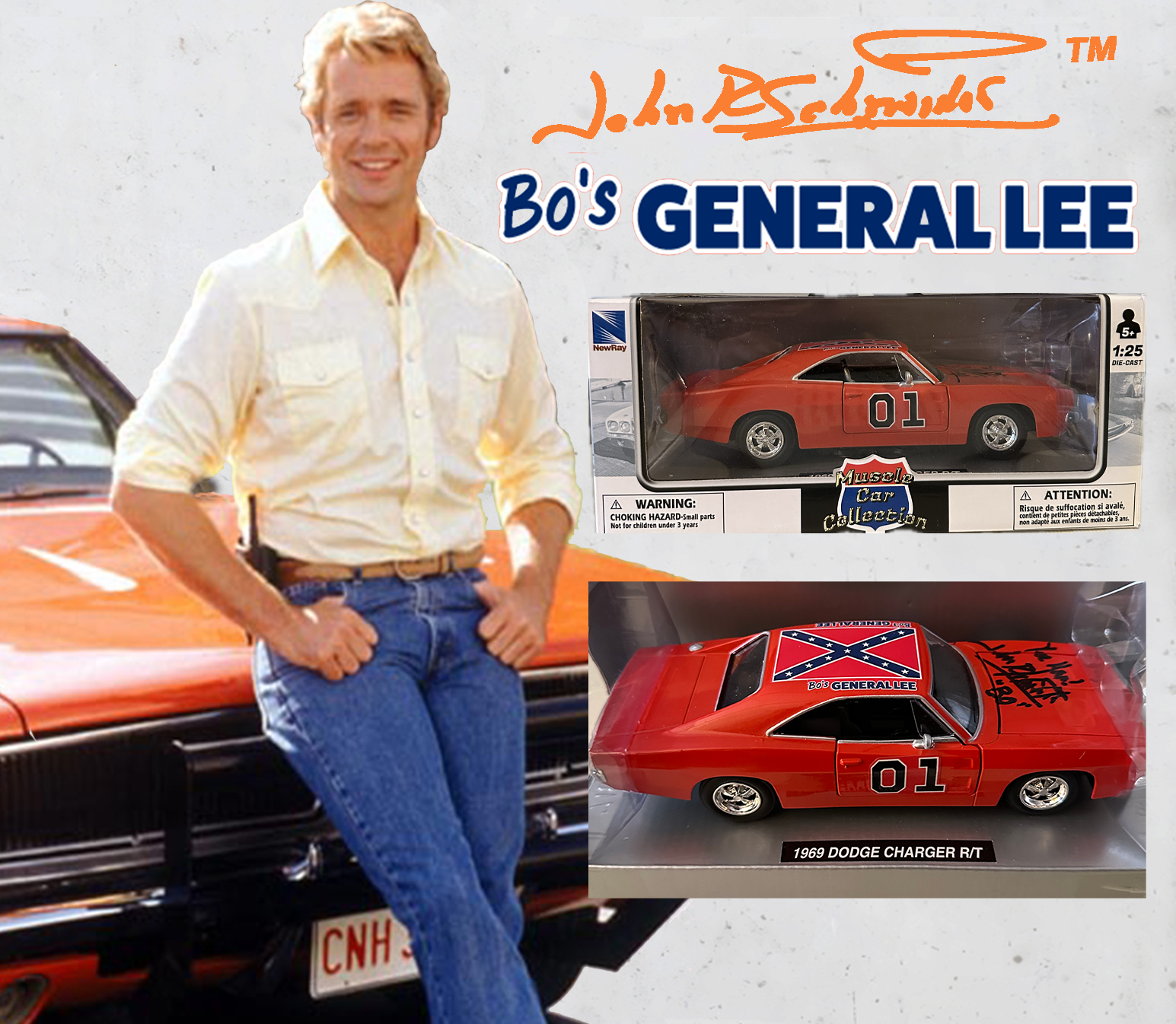 First time "BO'S GENERAL LEE" 1:25 scale General Lee cars are here at John Schneider Studios. All cars are autographed by John Schneider.