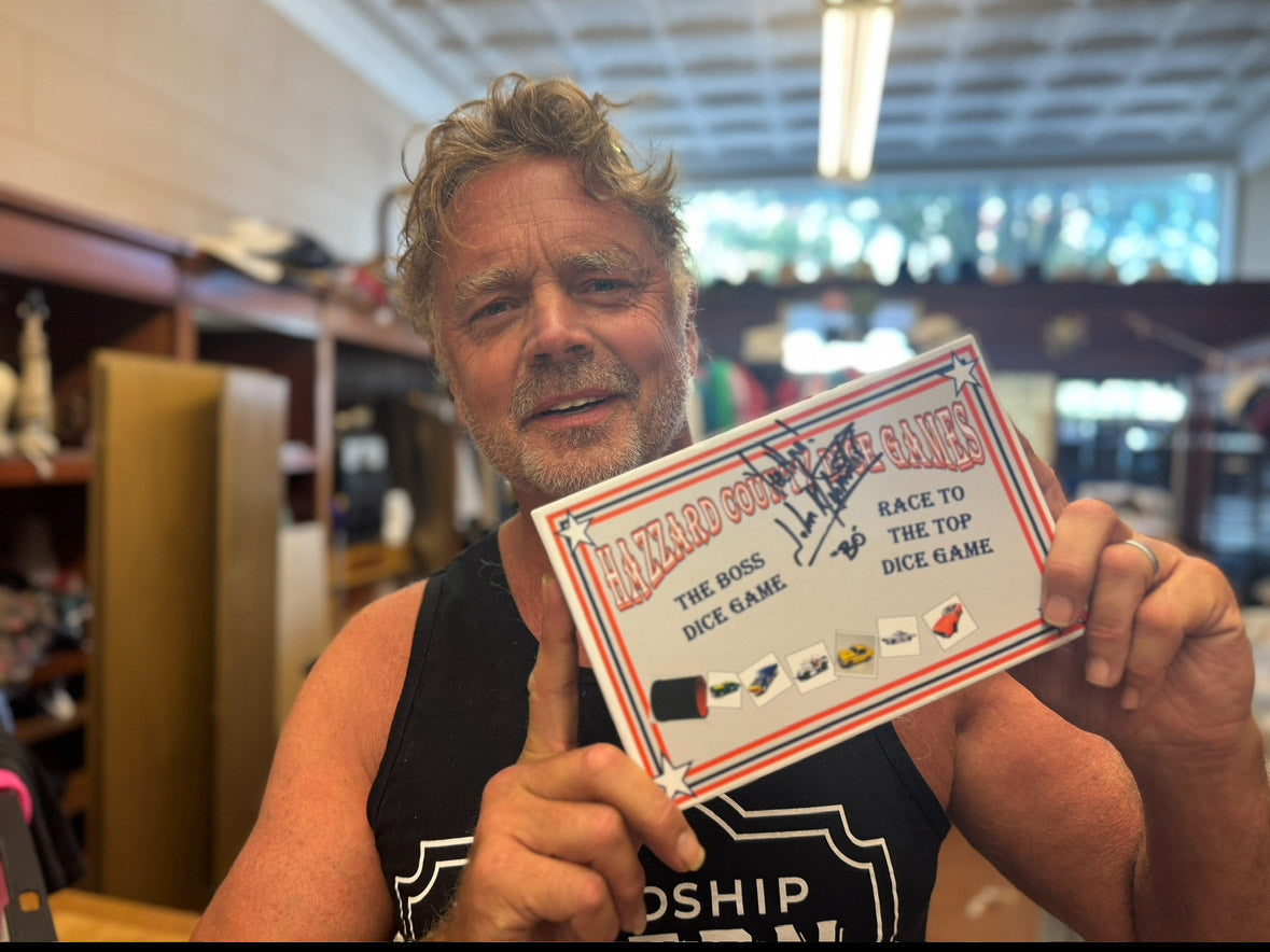 Imagine owning a vintage gem—signed by the legendary John Schneider himself! This isn’t just a collectible; it’s a electrifying piece of TV history from iconic shows like *The Dukes of Hazzard*, where Schneider’s Bo Duke roared through Hazzard County in the General Lee, to *Smallville*, where his Jonathan Kent shaped a young Superman, and *Dr. Quinn, Medicine Woman*, where he stole hearts as Daniel Simon. A signed item—be it a photo, script, or memorabilia—is a thrilling connection to these classic shows, dripping with nostalgia and star power. Display it proudly, and let the legacy of John Schneider’s unforgettable roles light up your collection! This is for a Hazzard County Dice Game autographed by John Schneider himself.