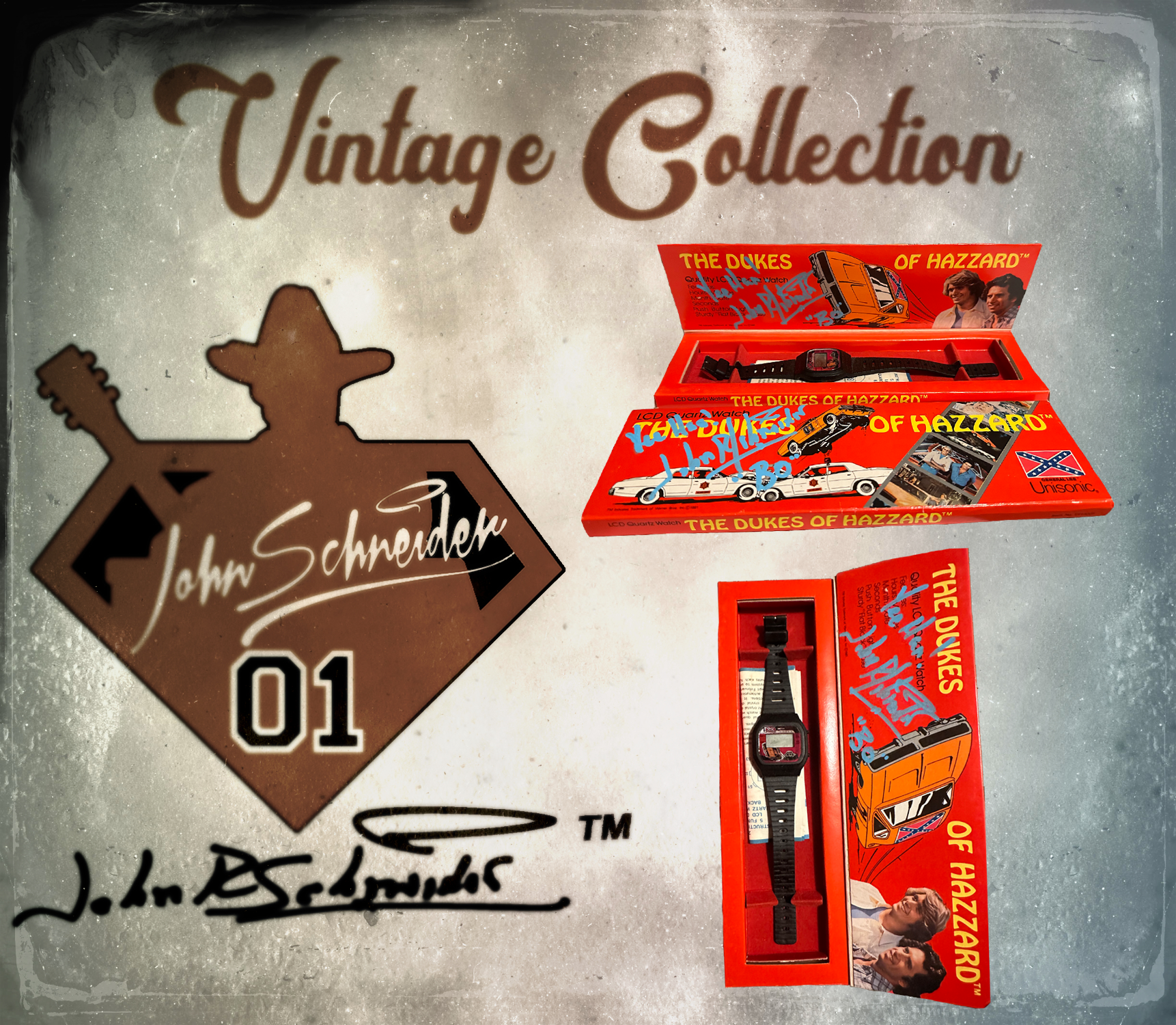 Imagine owning a vintage gem—signed by the legendary John Schneider himself! This isn’t just a collectible; it’s a electrifying piece of TV history from iconic shows like *The Dukes of Hazzard*, where Schneider’s Bo Duke roared through Hazzard County in the General Lee, to *Smallville*, where his Jonathan Kent shaped a young Superman, and *Dr. Quinn, Medicine Woman*, where he stole hearts as Daniel Simon. A signed item—be it a photo, script, or memorabilia—is a thrilling connection to these classic shows, dripping with nostalgia and star power. Display it proudly, and let the legacy of John Schneider’s unforgettable roles light up your collection! This is a 1981 Dukes Of Hazzard LCD Quartz Watch. Still in the original boxes. Note battery does not work.